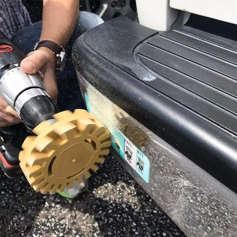 - Enkel att använda: Montera dekalborttagaren på en el- eller pneumatisk borr, tryck försiktigt på dekalen och arbeta fram och tillbaka tills dekalen är borta.